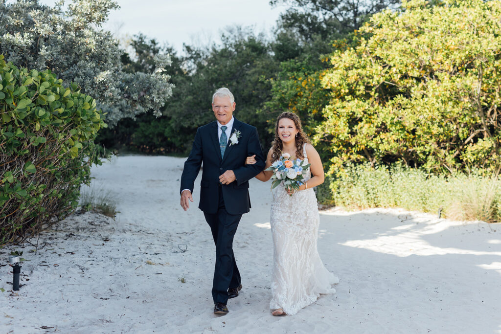 As Natalie walked down the sandy aisle, a soft sea breeze caught her veil just right. Evan met her with a steady smile. The sun glinted off the water as the couple said “I do” in front of close family and friends.