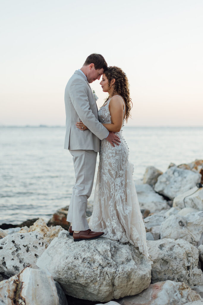 As wedding planners – there’s something truly magical about planning a wedding by the water in Tampa Bay. The salty breeze, the glow of golden hour, and the soft rhythm of waves create a backdrop that feels both timeless and serene. For Natalie and Evan, that dreamy coastal vision came to life with their Coastal CURRENT Hotel wedding.